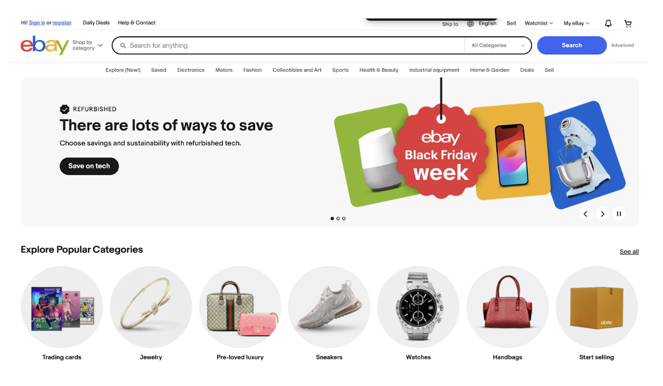 The eBay home page is the gateway to the platform. It’s designed to provide quick access to popular categories, trending deals, and personalized recommendations.