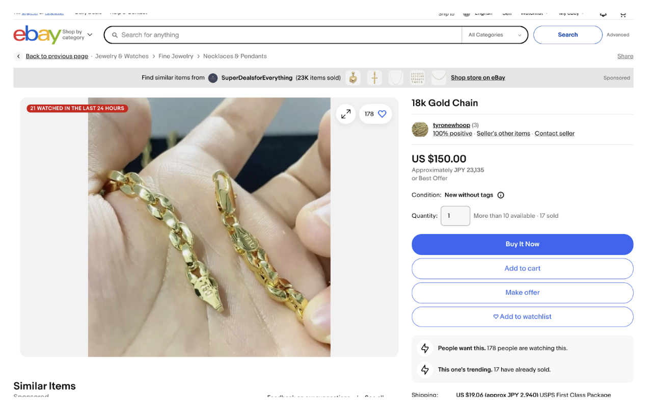 - Seller Details: Information about the seller, including ratings, feedback, and other items they sell.