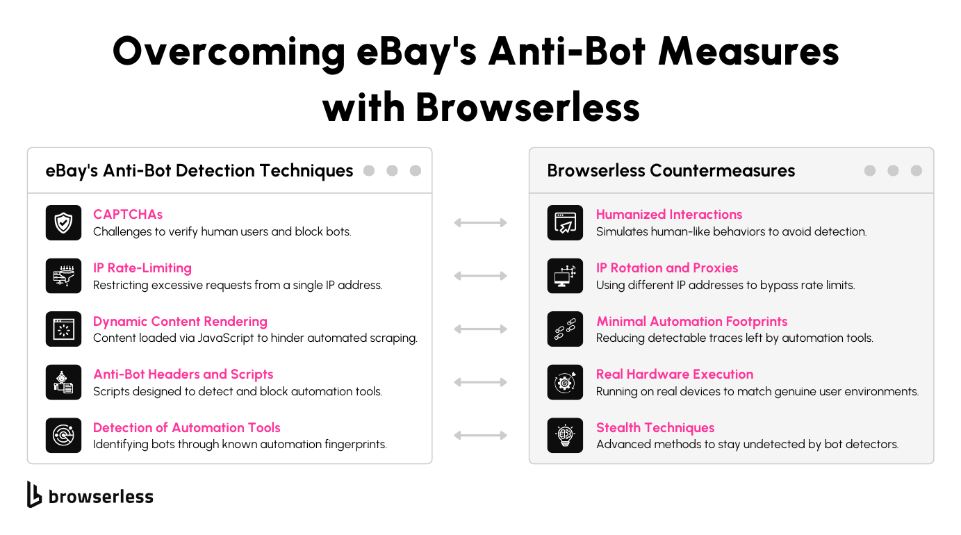 Scraping eBay at scale comes with challenges, but tools like Browserless make it manageable and efficient. While Puppeteer is great for small projects, scaling up requires the advanced features and anti-bot capabilities of BrowserQL. From handling complex detection systems to providing human-like interactions, BrowserQL streamlines the entire process. If you’re ready to take your scraping projects to the next level, give BrowserQL a try today.