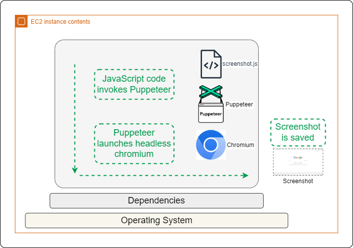 Unfortunately, Amazon Linux OS cannot be used for this setup due to missing dependencies required for Chromium and Puppeteer. While older Amazon Linux versions support EPEL (Extra Packages for Enterprise Linux) as mentioned here, they still lack key packages. Additionally, using EPEL involves risks, as mentioned in their documentation.